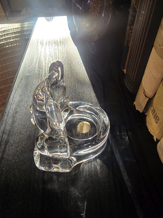 PartyLite Teddy Bear Tea Light Candle Holder/Paper Weight-Clear/Solid Glass 4x3"