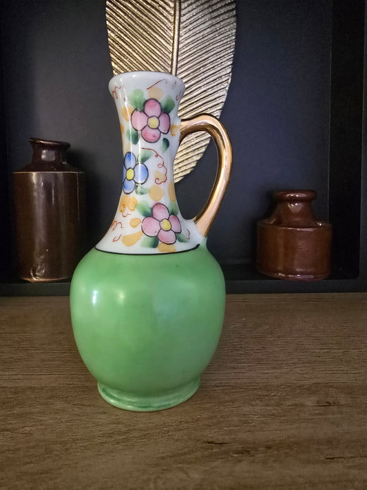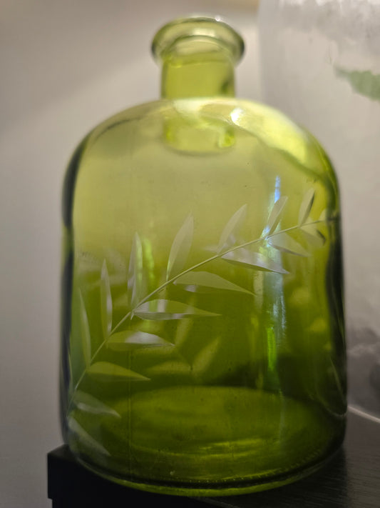 Vintage 60’s-70’s Green Rose Etched Vase With Twisted Pedestal