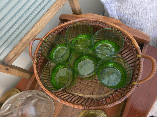 Vintage Mid-Century Modern Lime Green Highball Glasses, Set of 6, Honeycomb Base
