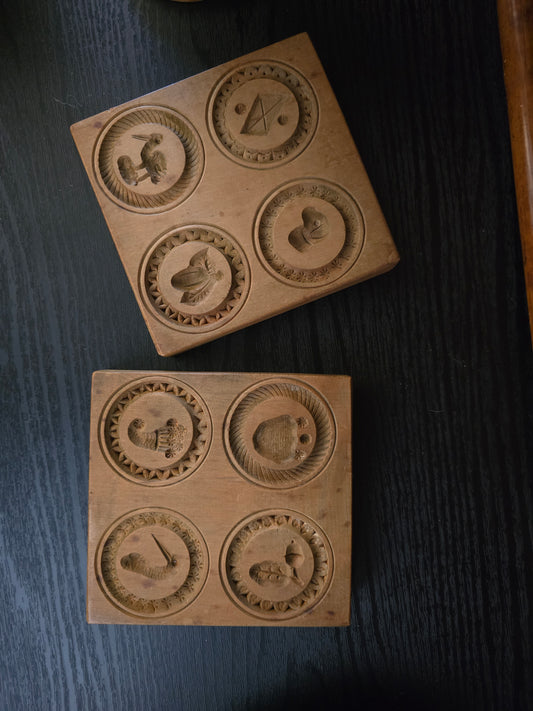 Vintage Wood, Hand Carved Speculaasplank, made in Holland, set of 2