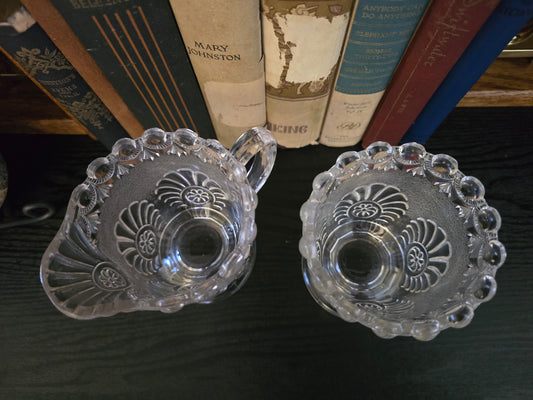 EAPG Antique Westmoreland SHELL & JEWEL Pattern Glass c1890s Pitcher & Spooner
