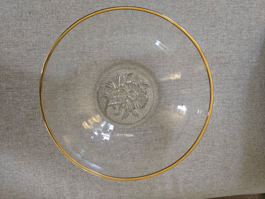 Vintage, Etched Glass, Gold Rim, Serving Bowl