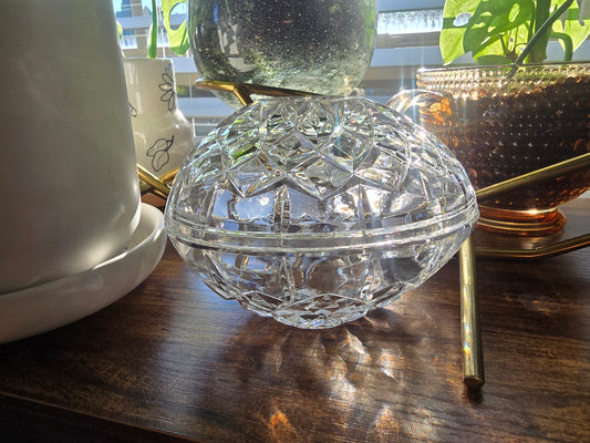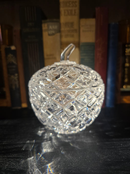 Vintage Clear Cut Glass Apple Shaped Sugar Bowl with Lid