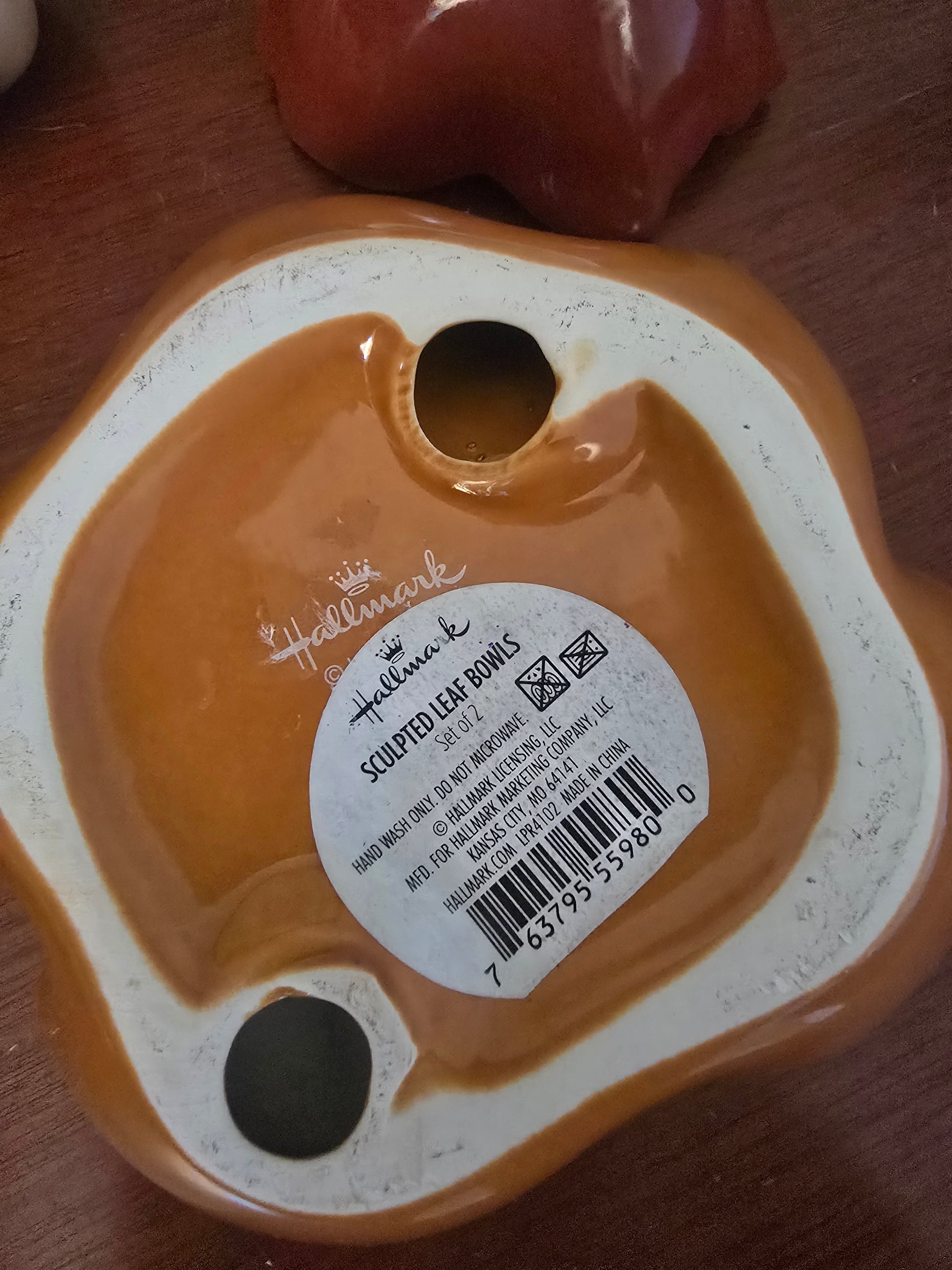 Hallmark set of 2 sculpted leaf bowls in good condition small chips could easily be covered or left alone, they provide depth and character.